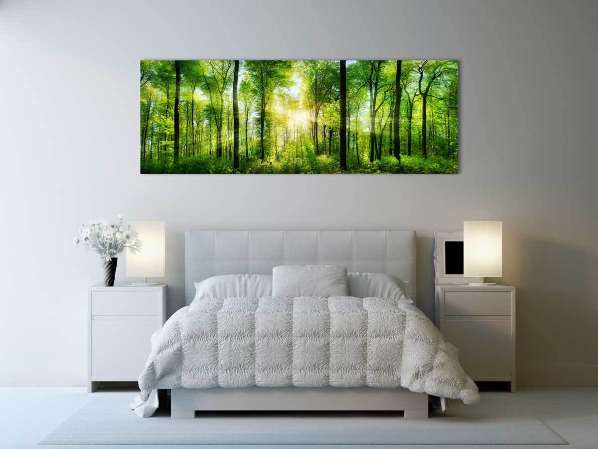 Dank der Größe können viele Details abgebildet werden und auch breitere Motive wirken lebendig. Tauchen Sie ab in die abgebildete Welt und nehmen Sie sich eine Auszeit! Besonders über dem Sofa oder dem Bett werden Panoramamotive gerne platziert. Sie verlängern auch optisch die Wand und bilden mit der Länge des Bettes oder Sofas eine optische Einheit.