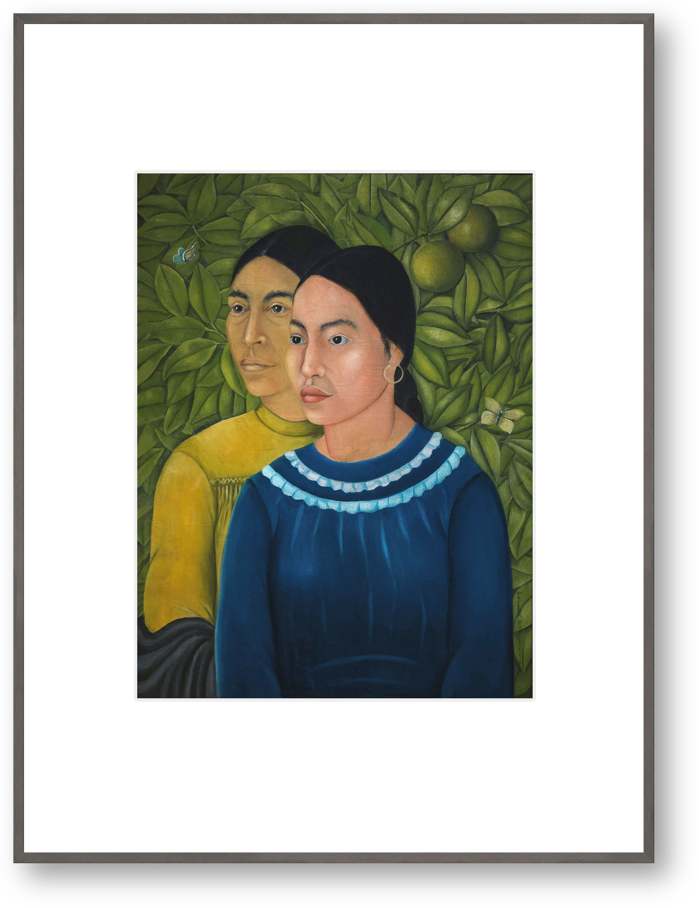 Frida Kahlo, Bilderrahmen Holz grau, Passepartout weiß,