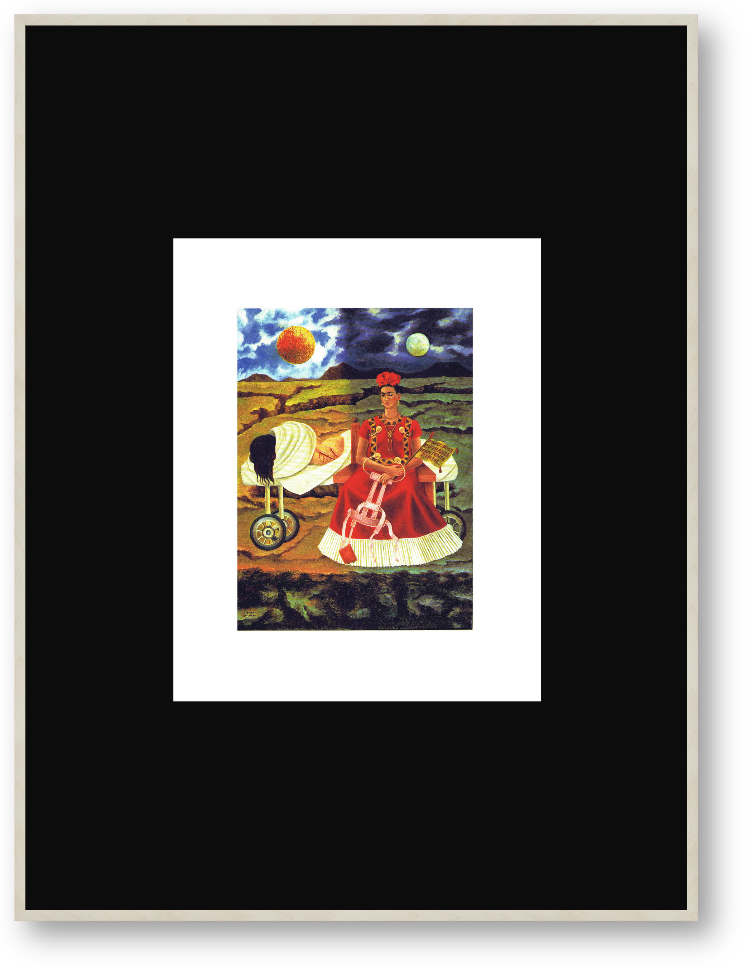 Frida Kahlo, Bilderrahmen Holz Ahorn, Passepartout schwarz und weiß,