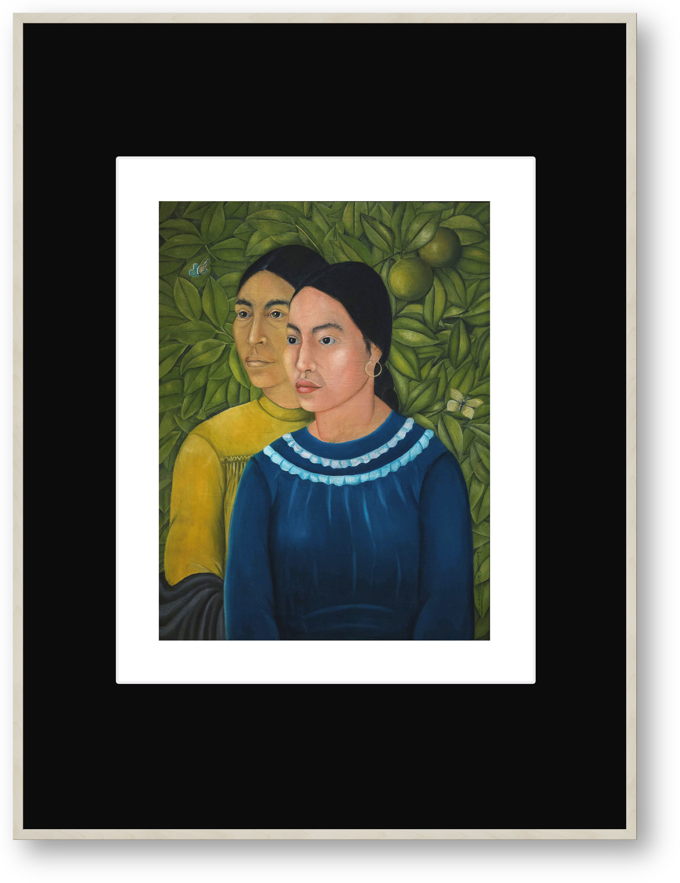 2 Frauen, 1928 - Passepartout schwarz/weiß, Rahmen Ahorn