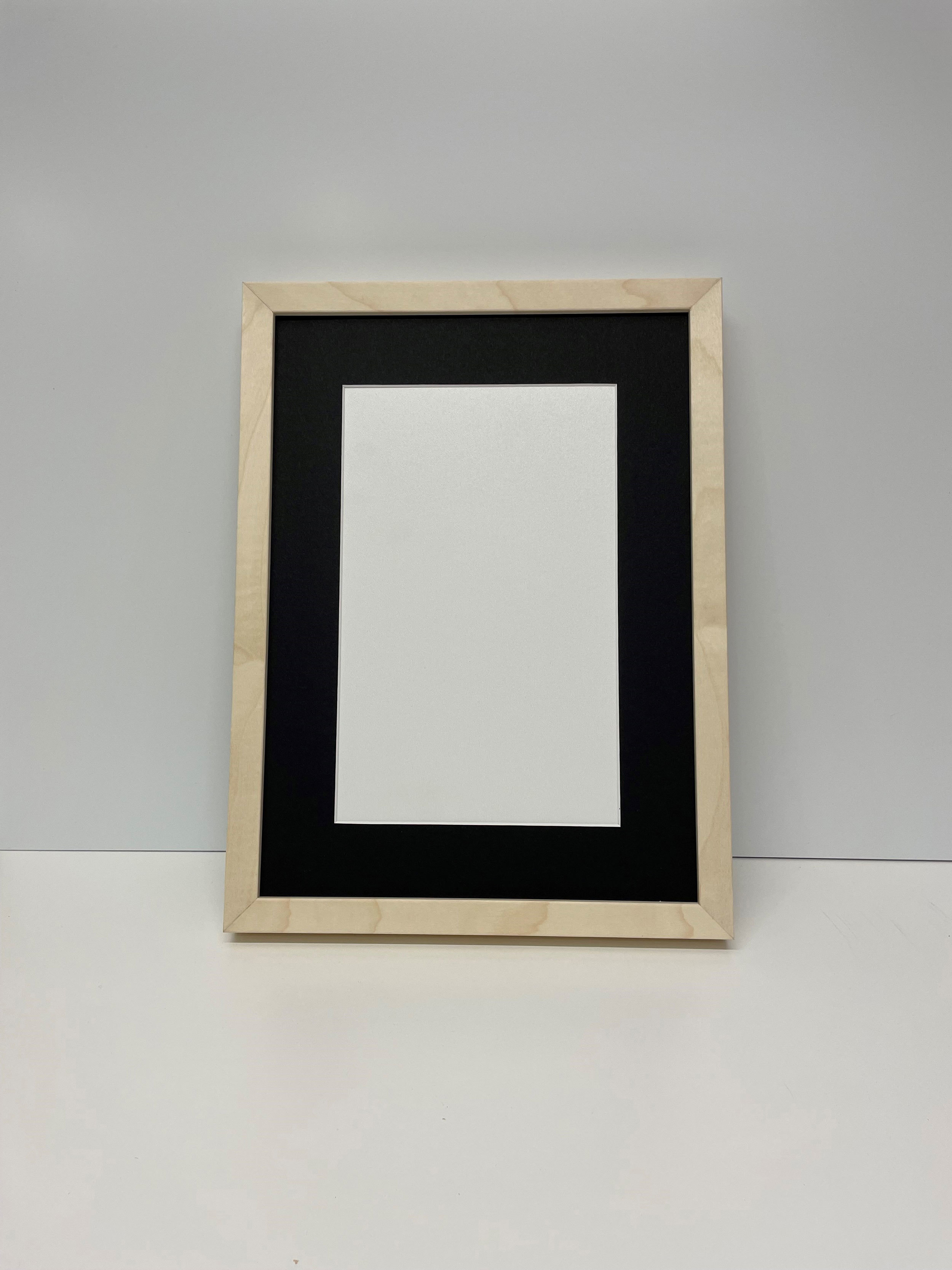Frida Kahlo, Bilderrahmen Holz Ahorn, Passepartout schwarz und weiß,